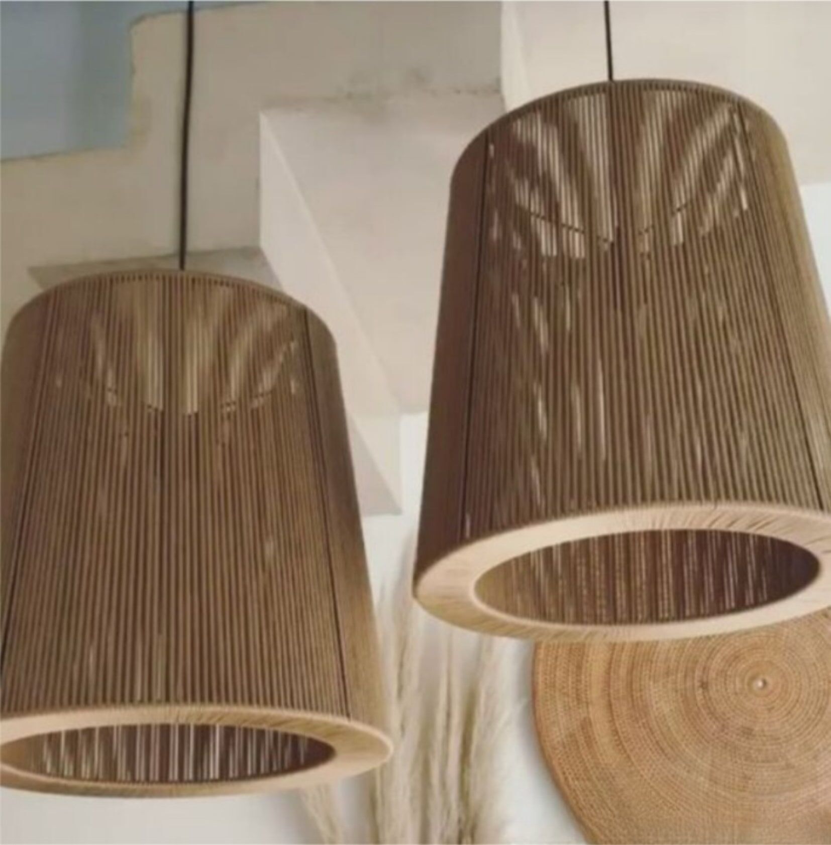 Transforme seu ambiente com a Luminária Pendente Cônica em Corda Náutica do Atelier Jeff Moraes, uma peça que combina a beleza natural da corda náutica com um design artesanal exclusivo.