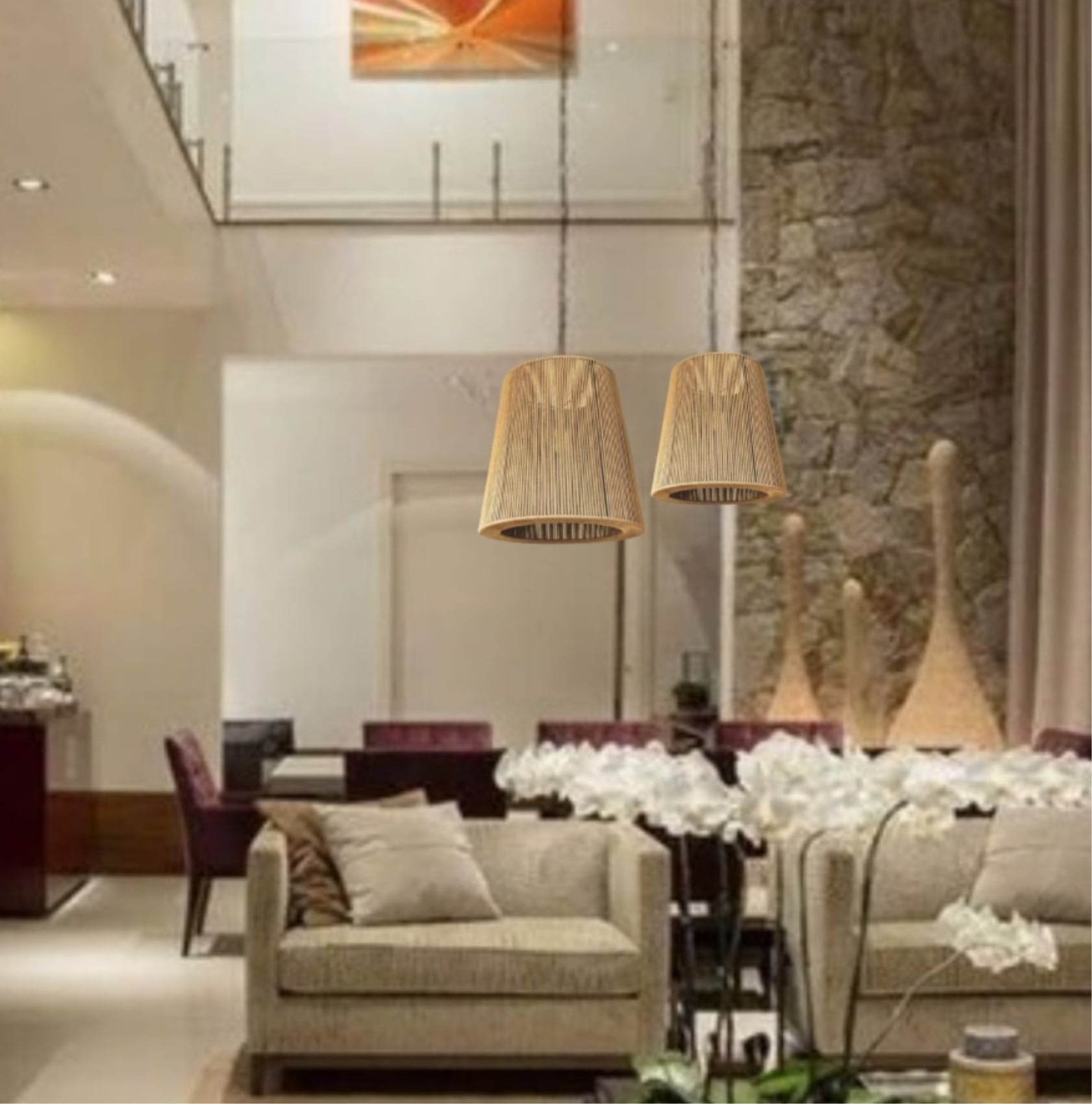 • Versatilidade na Decoração: Com seu estilo versátil, esta luminária pendente se adapta a diversos ambientes, desde salas de estar e quartos com decoração contemporânea até espaços mais rústicos. Personalize seu espaço com elegância natural.