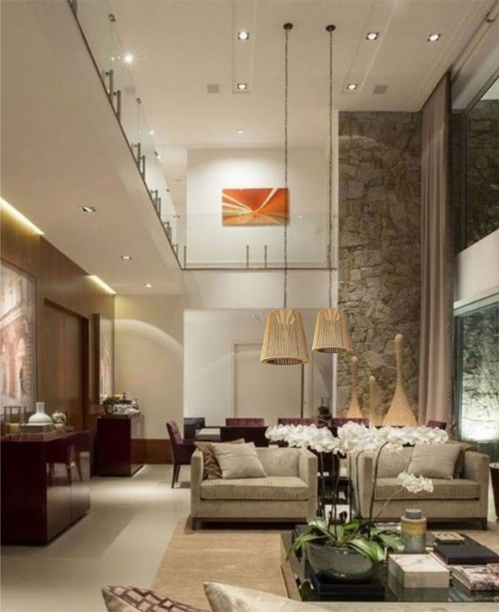 • Versatilidade na Decoração: Com seu estilo versátil, esta luminária pendente se adapta a diversos ambientes, desde salas de estar e quartos com decoração contemporânea até espaços mais rústicos. Personalize seu espaço com elegância natural.