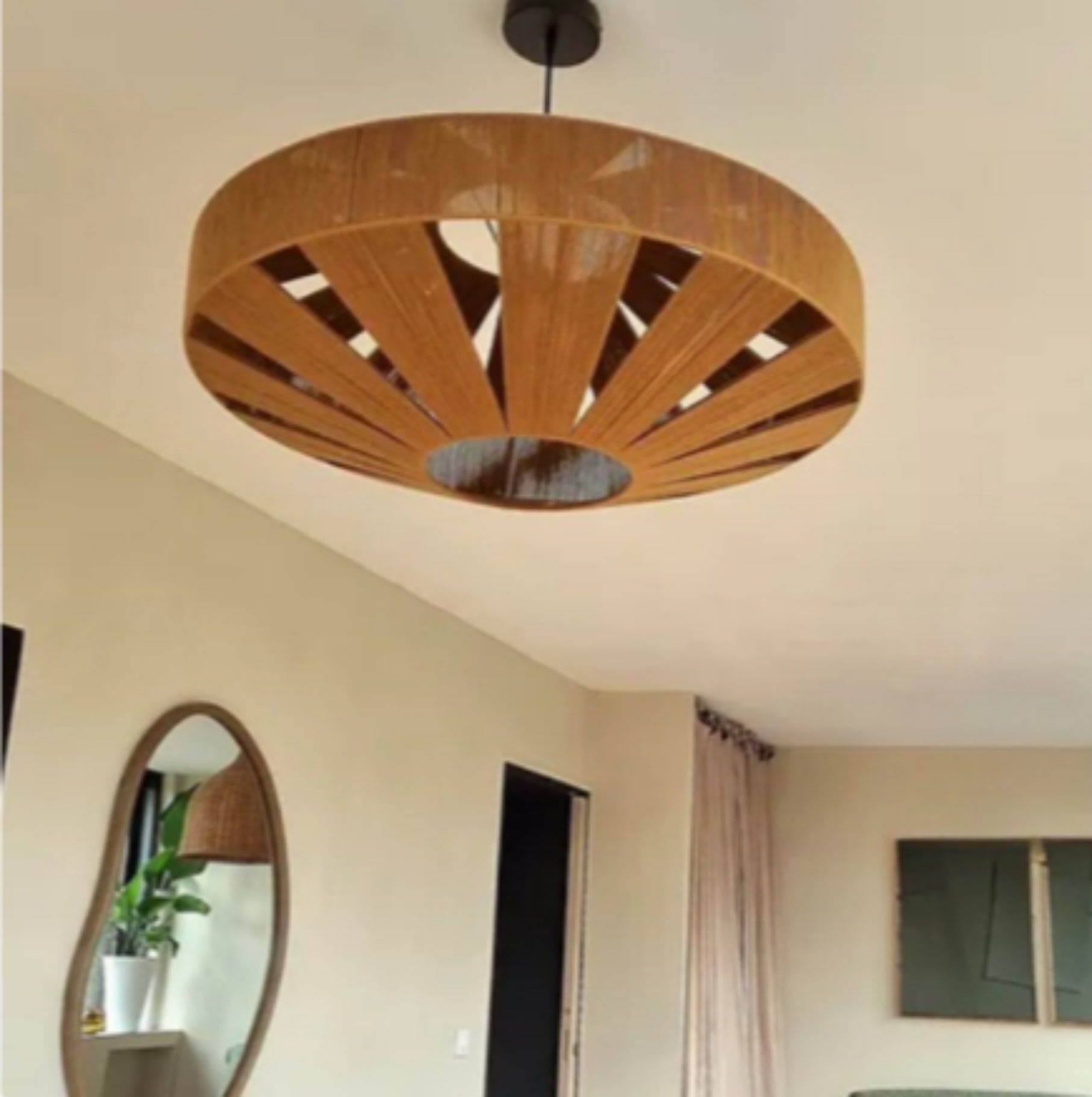 Esse tipo de trama, deixa a luz vazar com leveza dando um efeito lindíssimo ao ambiente. Cada peça é única.