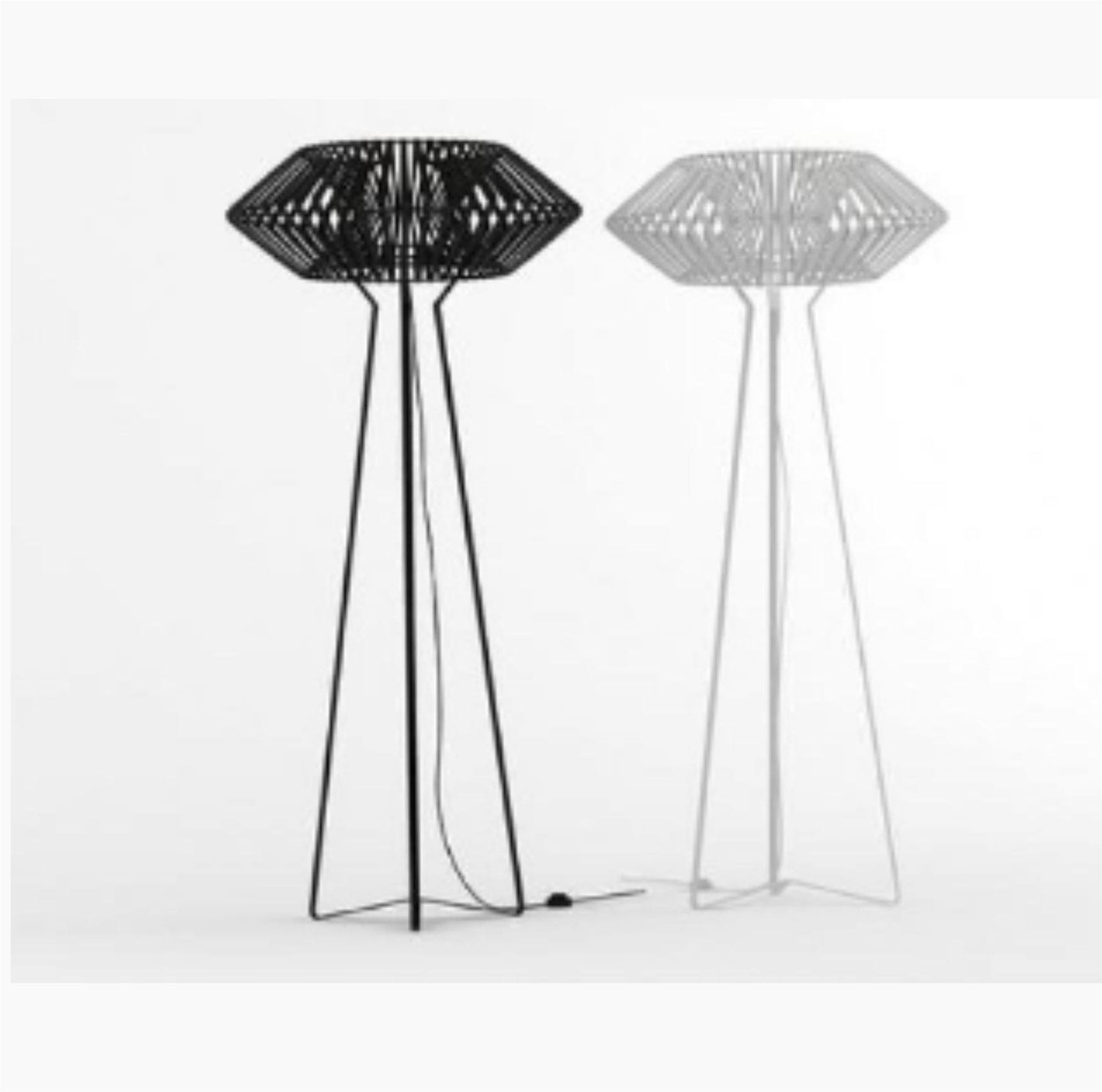 Feito artesanalmente em uma estrutura de aço carbono com pintura eletrostática, depois tramado à mão em corda náutica.