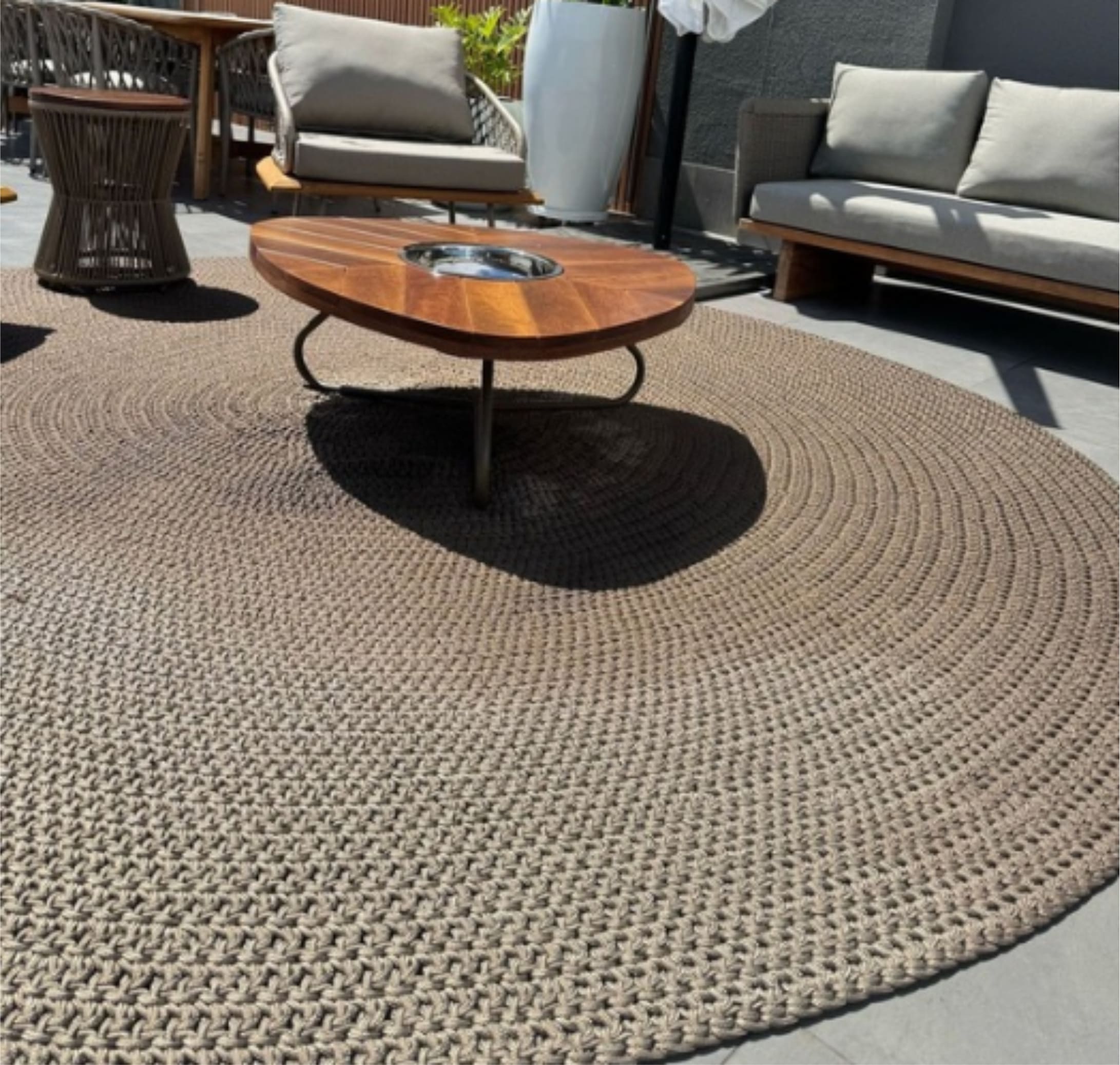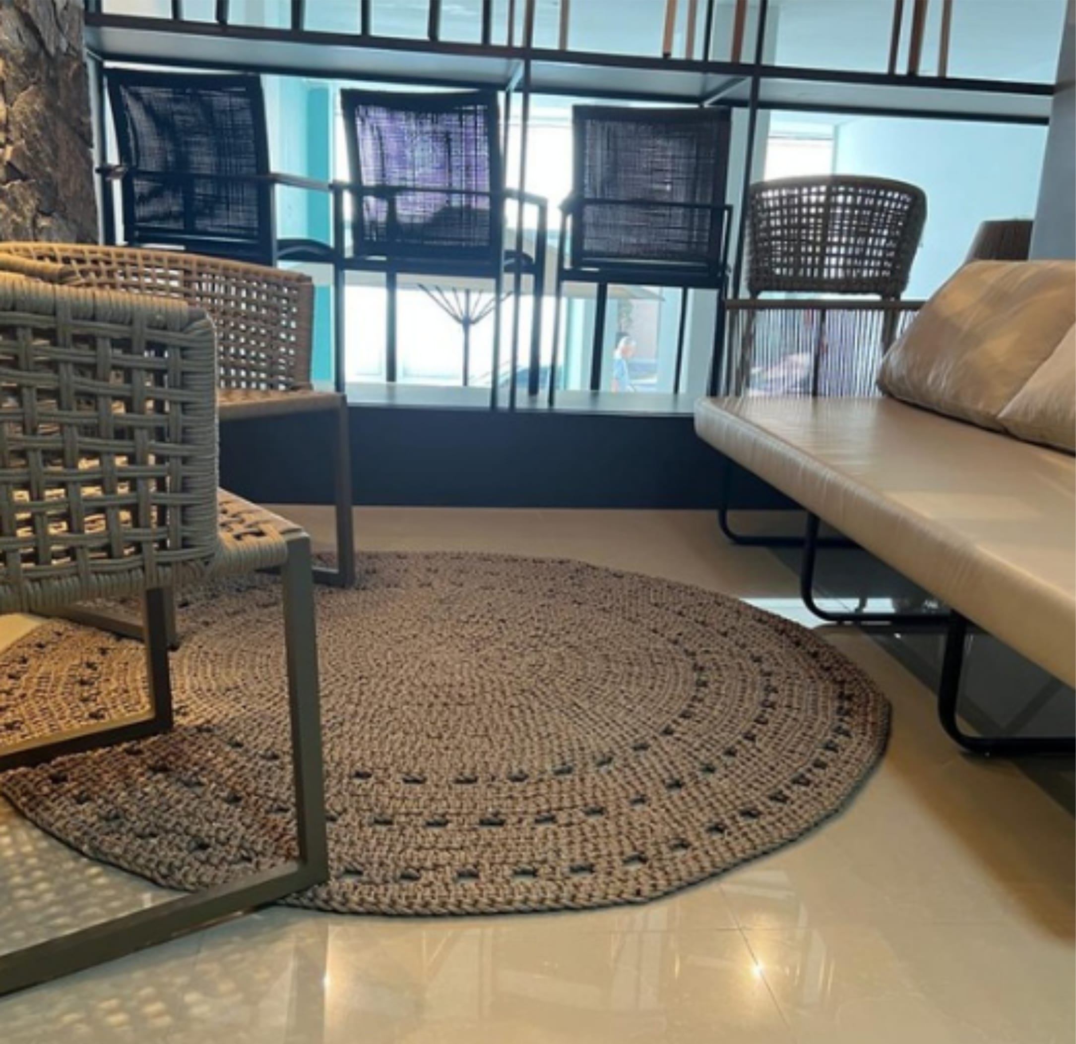 Tapete trabalhado manualmente em corda náutica